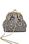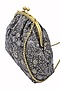 Featuring a grey potli purse in poly net base with brass frame and gold sequins embroidery. It has a poly satin underlining.