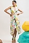 Multi-Colored Viscose Satin Printed Cut-Out Midi Dress