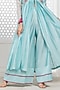 Featuring a blue anarkali in handwoven chanderi base with a front slit, glass beads, and sequins hand embroidery. It is paired with palazzo pants having organza layers and an organza-layered dupatta. Perfect wear for any special or festive occasion.