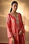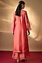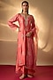 Featuring a coral pink kurta in handwoven chanderi base with zardosi and floral embroidery. It is paired with palazzo pants and an organza dupatta. Accentuate it with heavy jewellery, embellished heels and a potli bag, Perfect wear for wedding ceremony or festive occasions.