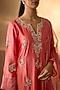 Coral Pink Handwoven Chanderi Zardosi Embroidered Kurta Set