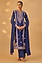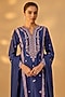 Featuring a deep blue kurta in handwoven chanderi base with embroidery and panel detailing. It is paired with tabby strip pants and a mul dupatta. Accentuate it with statement jewellery and heels for a graceful look, perfect for festive gatherings, pooja ceremonies or pre-wedding functions.