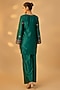 Featuring an emerald green kurta in handwoven chanderi base with thread floral embroidery. It is paired with tabby strip wide-leg pants and a mul sheer dupatta. Accentuate it with statement jewellery and heels for a graceful look, perfect for festive gatherings, pooja ceremonies or pre-wedding functions.