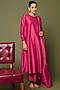 Featuring a fuchsia pink panelled anarkali in chanderi base with badla, resham, and thread embroidery. It is paired with matching palazzo pants and a tabby silk dupatta.