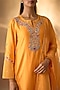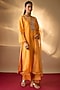 Featuring a mango yellow kurta in handwoven chanderi base with zardosi hand embroidery. It is paired with palazzo pants and a sheer organza dupatta. Accentuate it with heavy jewellery, embellished heels and a potli bag, Perfect wear for wedding ceremony or festive occasions.