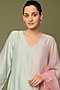 Featuring a mint kurta in chanderi base with golden lace embroidery. It is paired with matching palazzo pants and a light pink pure organza dupatta.