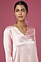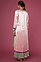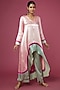 Featuring a peach high-low kurta in mashru silk base with contrasting mint panels. It is paired with contrasting mint bell bottom pants.