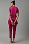 Featuring a pink short kurta in mashru silk base with golden lace embroidery. It is paired with matching pants and a tabby silk dupatta.