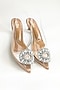 Beige Faux Leather Rhinestone Embellished Transparent Kitten Heels
