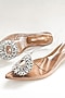 Featuring a pair of beige transparent pointed kitten heels in faux leather base with rhinestone embellished circular brooch. It has 2-inch heels.