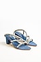 Blue Denim Fabric Rhinestone Embellished Strappy Block Heels