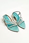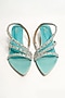 Sea Green Satin Rhinestone Embellished Strappy Block Heels