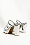 Featuring a pair of silver strappy block heels in vegan faux leather base. It has a 4-inch heel. Elevate your stride with timeless elegance and exceptional craftsmanship, perfect for an evening wear.
