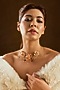 Featuring a multi-colored enameled floral necklace, set in brass. Perfect for pre-wedding functions, festive celebrations, evening soirees, cocktail events, or elegant brunches.