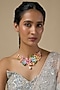 Featuring a multi-colored enameled floral necklace, set in brass. Perfect for pre-wedding functions, festive celebrations, evening soirees, cocktail events, or elegant brunches.