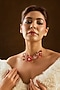 Featuring a pink enameled floral necklace, set in brass. Perfect for pre-wedding functions, festive celebrations, evening soirees, cocktail events, or elegant brunches.