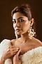 Featuring a pair of white enameled floral dangler earrings, set in brass. Perfect for pre-wedding functions, festive celebrations, evening soirees, cocktail events, or elegant brunches.