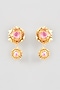 Gold Finish Pink Agate Floral Stud Earrings