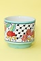Bringing global vibes to your home, this planter has Hibiscus painted all over it along with a pastel green that will take you straight to Greece.