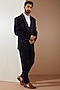 Blue Japanese Fabric Cutwork Hand Embroidered Tuxedo Set