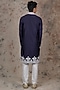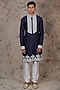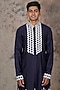 Featuring a navy blue kurta in cotton silk base with leather embroidery. It is paired with pyjama pants. Perfect wear for festive occasions or pre-wedding ceremonies.