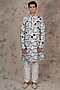 Featuring a white kurta in cotton silk base with leather patchwork embroidery. It is paired with pyjama pants. Perfect wear for festive occasions or pre-wedding ceremonies.