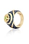 Featuring a gold plated navy blue enamel ring with navy resin centre stone and zircon detailing all over, set in base metal.