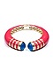 Featuring a gold plated pink enamelled open bangle with blue garnet pyramid shaped ends with zircon embellished panels, set in base metal.