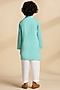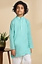Featuring a blue kurta for boys in cotton base with pocket detailing. It is paired with white pants. Style it with a watch and pair of mojris for a wedding, sangeet or engagement ceremony.
