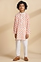 Featuring a chrome-colored polka kurta for boys in cotton base. It is paired with white pants. Style it with a watch and pair of mojris for a wedding, sangeet or engagement ceremony.