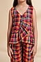 Featuring a multi-colored checkered top for girls in cotton base with embroidery. It is paired with flared pants. Accessorise it with matching hair accessories and sandals for a stylish ensemble, ideal for a festive occasion.
