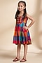 Featuring a multi-colored checkered dress for girls in cotton base with embroidery. Accessorise it with matching hair accessories and sandals for a stylish ensemble, ideal for vacation wear or playdate.