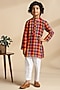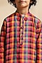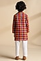 Multi-Colored Cotton Embroidered & Checkered Kurta Set For Boys