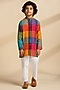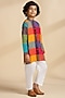 Multi-Colored Cotton Embroidered & Checkered Kurta Set For Boys