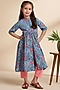 Featuring a navy blue floral cape for girls in cotton base. It is paired with peach pants. Accessorise it with matching hair accessories and sandals for a stylish ensemble, ideal for a festive occasion.