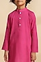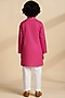 Featuring a pink kurta for boys in cotton base with pocket detailing. It is paired with white pants. Style it with a watch and pair of mojris for a wedding, sangeet or engagement ceremony.