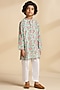 Sea Green Cotton Floral Kurta Set For Boys