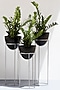 Black and silver ovate shaped planter set in iron and zinc base. Add some flower sticks, potted plants or even faux plants for the perfect touch of green in your living space.