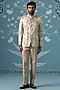Featuring a beige bandhgala in polyester base with digital print. It is paired with pants. Style it with mojaris for a festive occasion, wedding, engagement or sangeet ceremony.