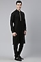 Black Jacquard Art Silk Printed Bundi Jacket With Kurta Set