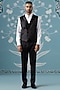 Featuring a black tuxedo in velvet base with embroidery. It is paired with a waistcoat, a shirt and pants. Style it with shoes for a festive occasion, creative event or elevated casual wear.