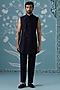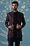 Featuring a blue indowestern in poly cotton base with floral embroidery. It is paired with a kurta and pants. Style it with mojaris for a festive occasion, reception, wedding, sangeet or engagement ceremony.