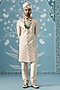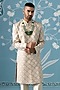 Cream Cotton Embroidered Sherwani Set