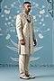 Featuring a cream sherwani in cotton base with embroidery. It is paired with pants. Style it with mojaris for a wedding or engagement ceremony.
