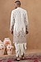 Featuring a cream kurta in cotton silk base with machine embroidery. It is paired with dhoti. Style it with mojaris for a festive occasion, cultural event, wedding, engagement or sangeet ceremony.