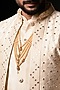 Featuring a cream open jacket in raw silk base with mirror embroidery. It is paired with a kurta and pants. Style it with mojaris for a festive occasion, sangeet, engagement or wedding ceremony.