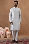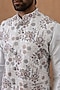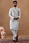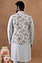Featuring an ice blue long bundi jacket in polyester base with floral embroidery. It is paired with a kurta and pyjama pants. Style it with shoes for a festive occasion, wedding, engagement or sangeet wear.