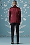 Featuring a maroon blazer in imported fabric base with embroidery. It is paired with a shirt and pants. Style it with shoes for a festive occasion, reception, sangeet or engagement ceremony.