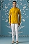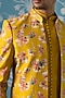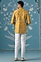 Featuring a mustard bandhgala in polyester base with print. It is paired with pants. Style it with mojaris for a festive occasion, wedding, haldi, engagement or sangeet ceremony.