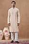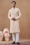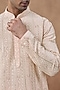 Featuring a pastel peach kurta in cotton silk base with sequins embroidery. It is paired with pyjama pants. Style it with mojaris for a festive occasion, cultural event, wedding or engagement ceremony.